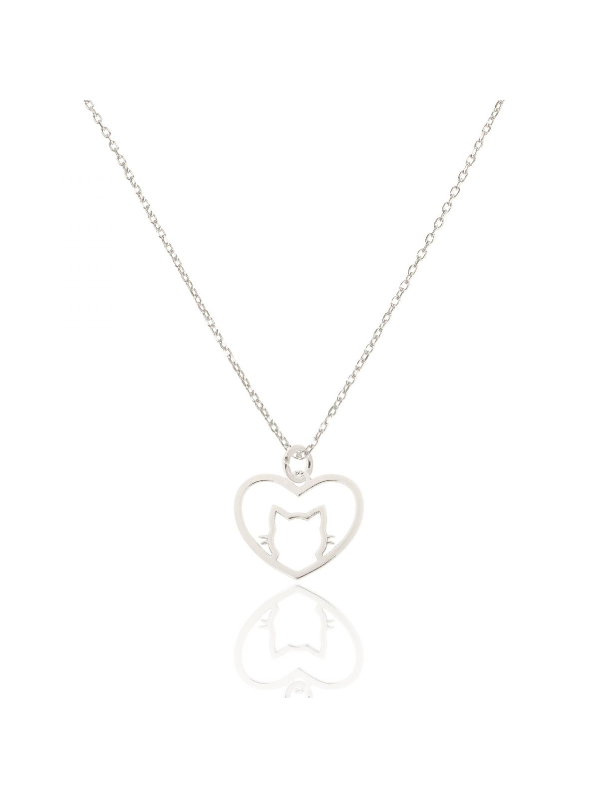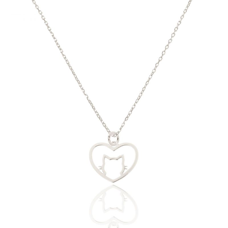 Naszyjnik srebrny z kotkiem w serduszku. Całość wykonana ze srebra próby 925.
